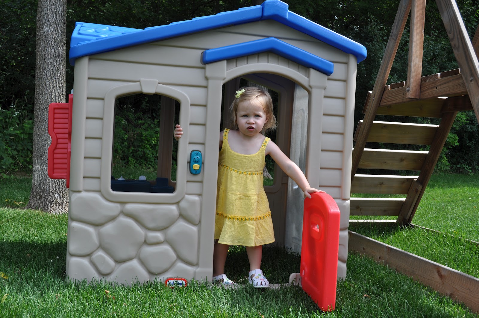 It's official, she's spoiled! Well, at least we're thrifty and buy the big stuff (and most of the little stuff) at garage sales! I was so excited with this find, I've been looking for a long time and I finally found one! It was about $20 cheaper then any other house I've ever seen on craigslist or other garage sales!